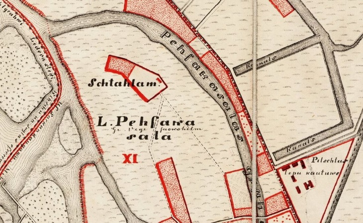 Весьма витиевата история топонима Sarkandaugava (Красная Двина). Изначально это название носила речка – рукав Западной Двины, а затем по ее имени был назван и весь район.